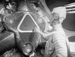Even more in the steampunk vein is The Night of the Glowing Corpse, in which West has to foil the attempted theft of radioactive franconium from the French government. We know that this episode takes place in 1870 since France is at war with Prussia but has not yet been defeated. The nature of radioactivity was in reality not understood until the 1890s. Radioactivity is not the only steampunk element here - Artemus has invented a primitive aqualung (and a couple of other cool tricks as well), and a French scientist has invented a delightful early version of a Geiger counter. The more steampunk the series got the better it became.